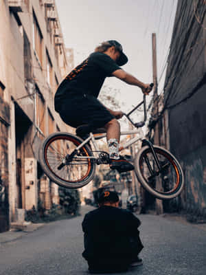 An Intense And Thrilling Bmx Jump Wallpaper -