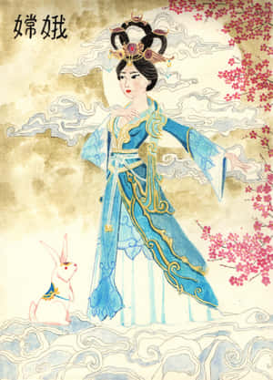 Ethereal Depiction Of Chang'e, The Mythical Lunar Goddess Wallpaper