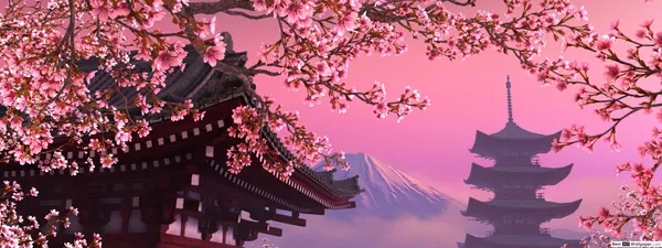 Cherry Blossom Zen Garden Anime Style Wallpaper -