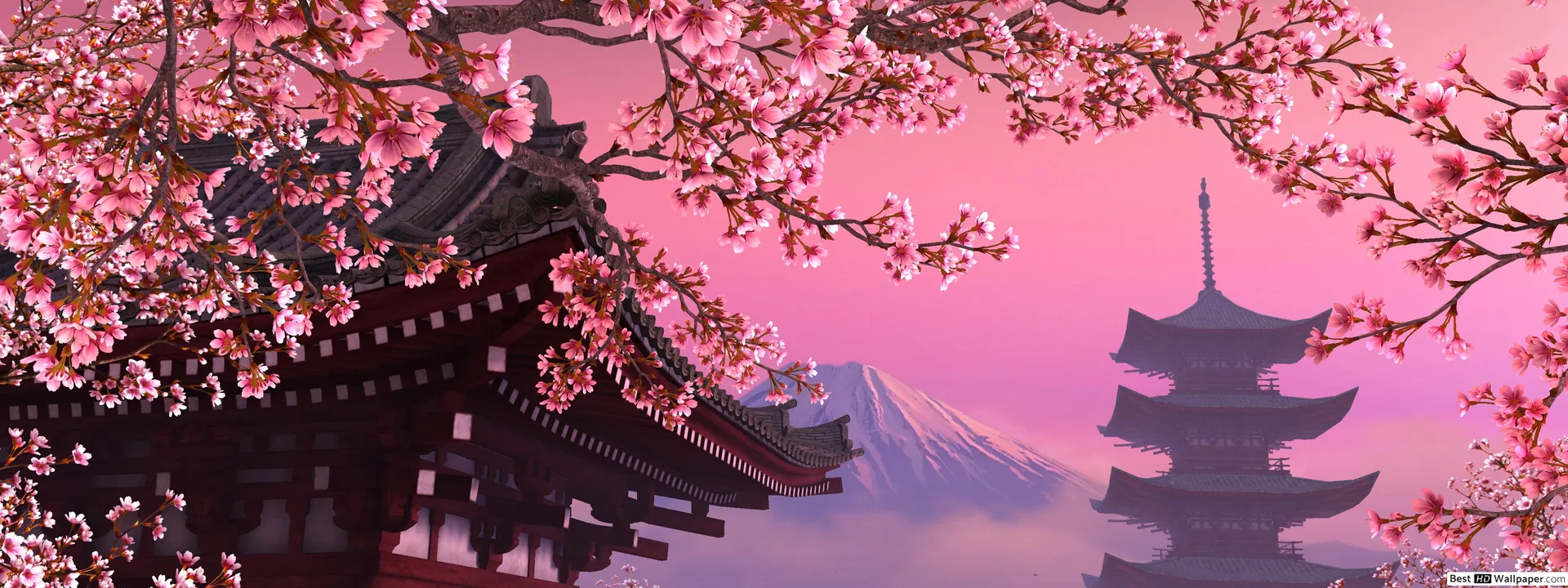 Sakura Blossom Traditional House Anime Scene Wallpaper -