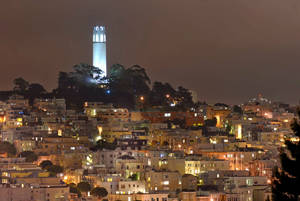 "view Of Shimmering Coit Tower In San Francisco" Wallpaper -