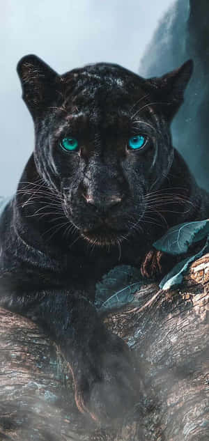 A Majestic Black Panther Animal Against A Cool Blue Background. Wallpaper -