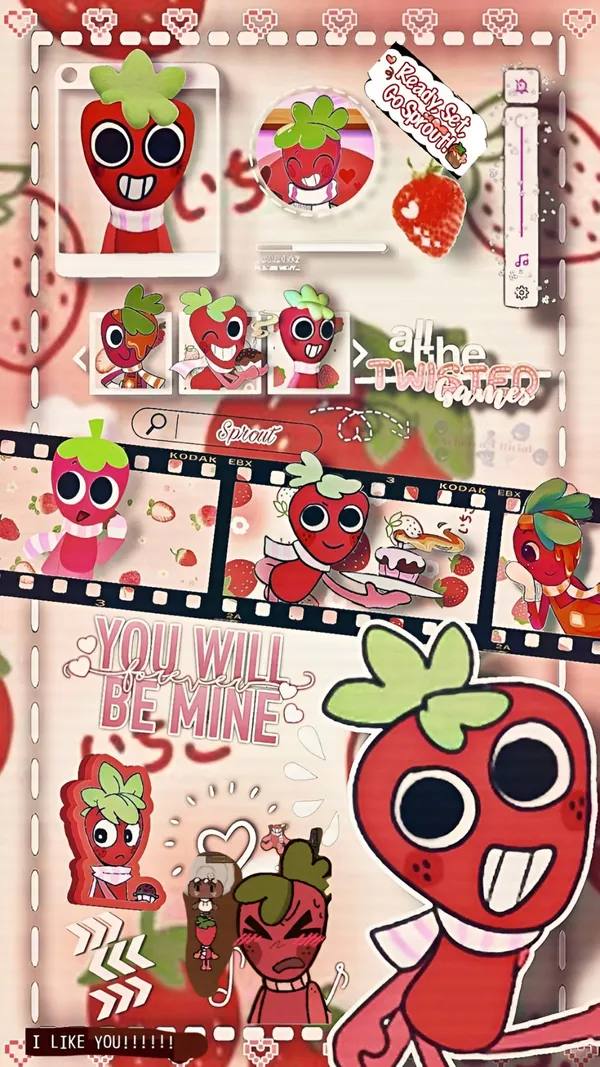 Dandys World Strawberry Characters Wallpaper -