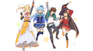 • Join Megumin, Aqua, Darkness And Kazuma In The Fantasy World Of Konosuba Wallpaper