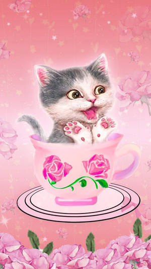 Kawaii Cute Animals Pink Cat Wallpaper