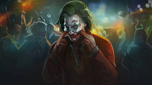 The Joker Is In Front Of A Crowd Of People Wallpaper -