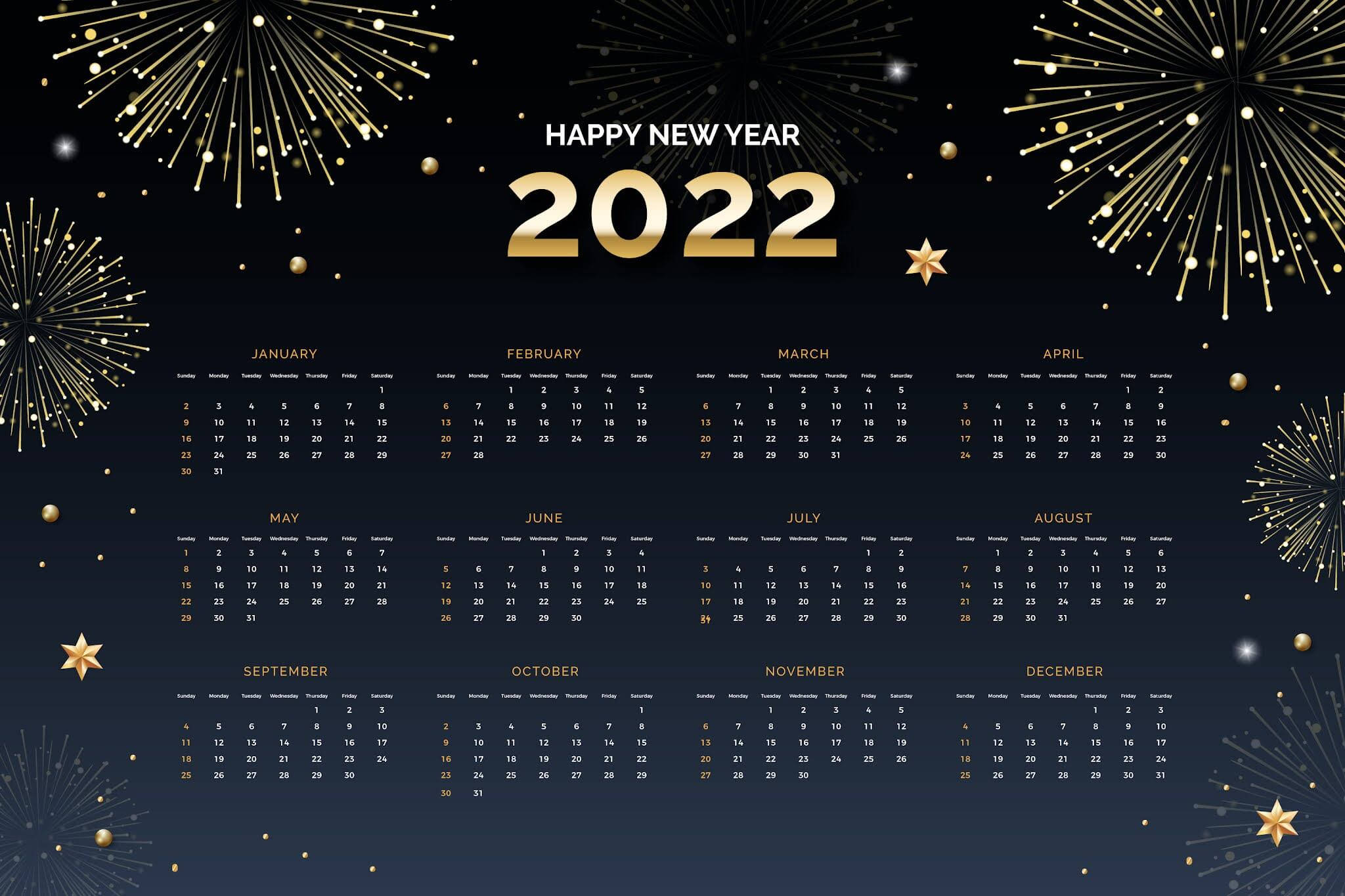 2022 Calendar With Fireworks Wallpaper