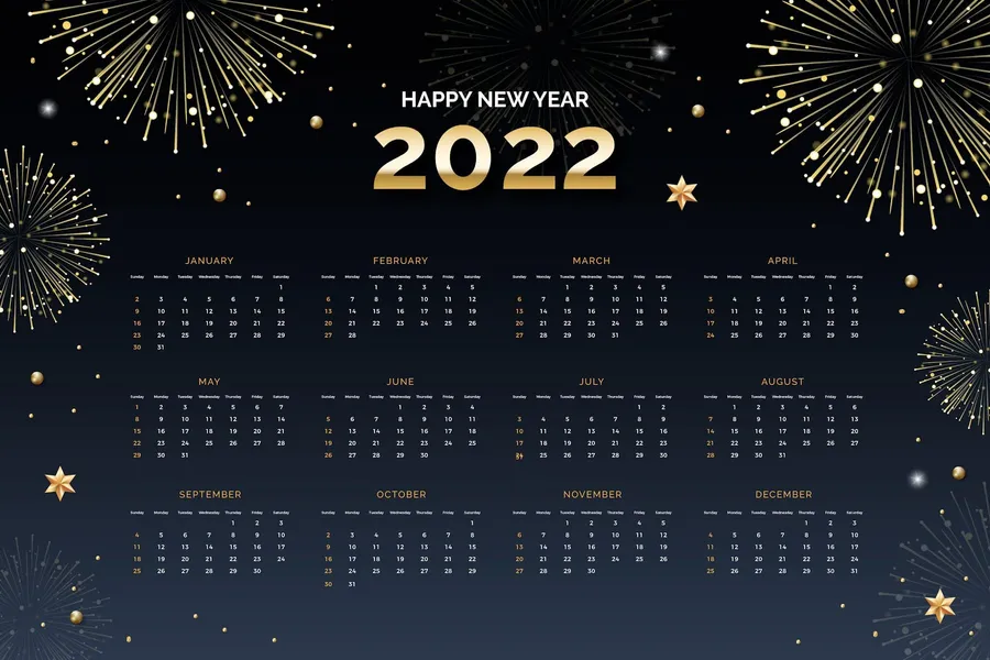 2022 Calendar With Fireworks -