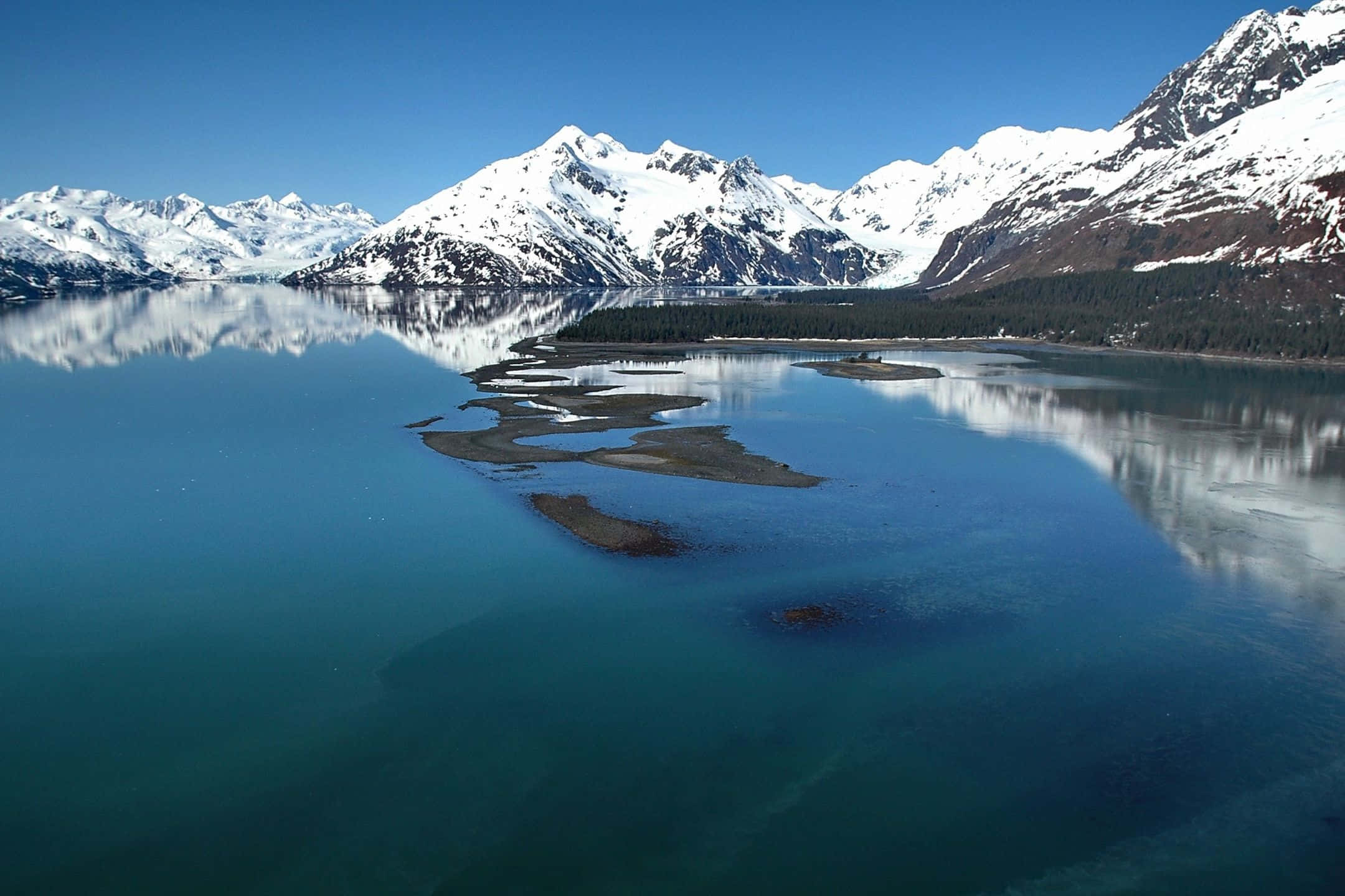 A Picturesque View Of Shining Lakes And Snow Covered Mountain Tops Wallpaper -