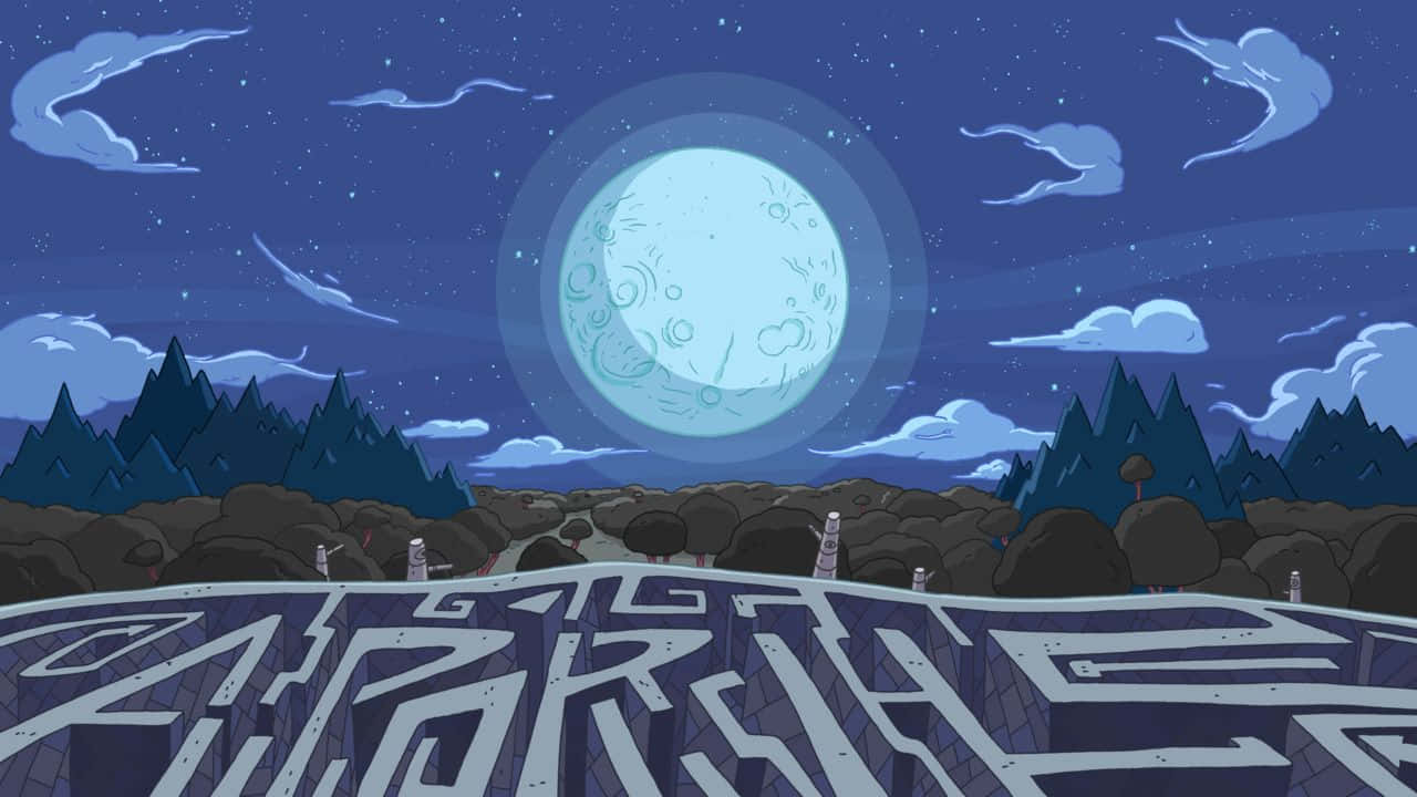 Related A Cartoon Image Of A Maze With A Moon In The Background Wallpaper