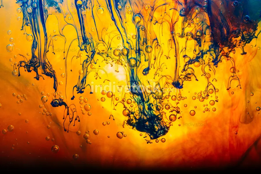 A Colorful Liquid With Orange And Blue Splashes -
