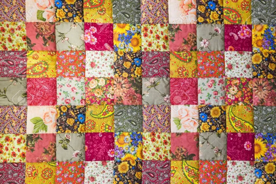A Quilt With A Patchwork Pattern And Flowers Wallpaper -