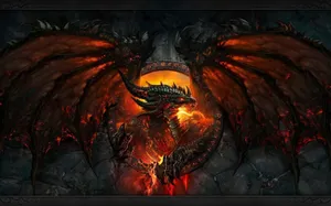 A Ferocious Fire-breathing Dragon Within A Forest Of Fiery Trees Wallpaper