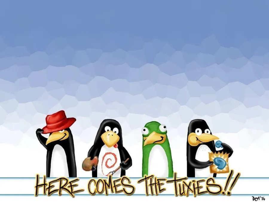 Charming Penguin Tux Linux Mascot Wallpaper -