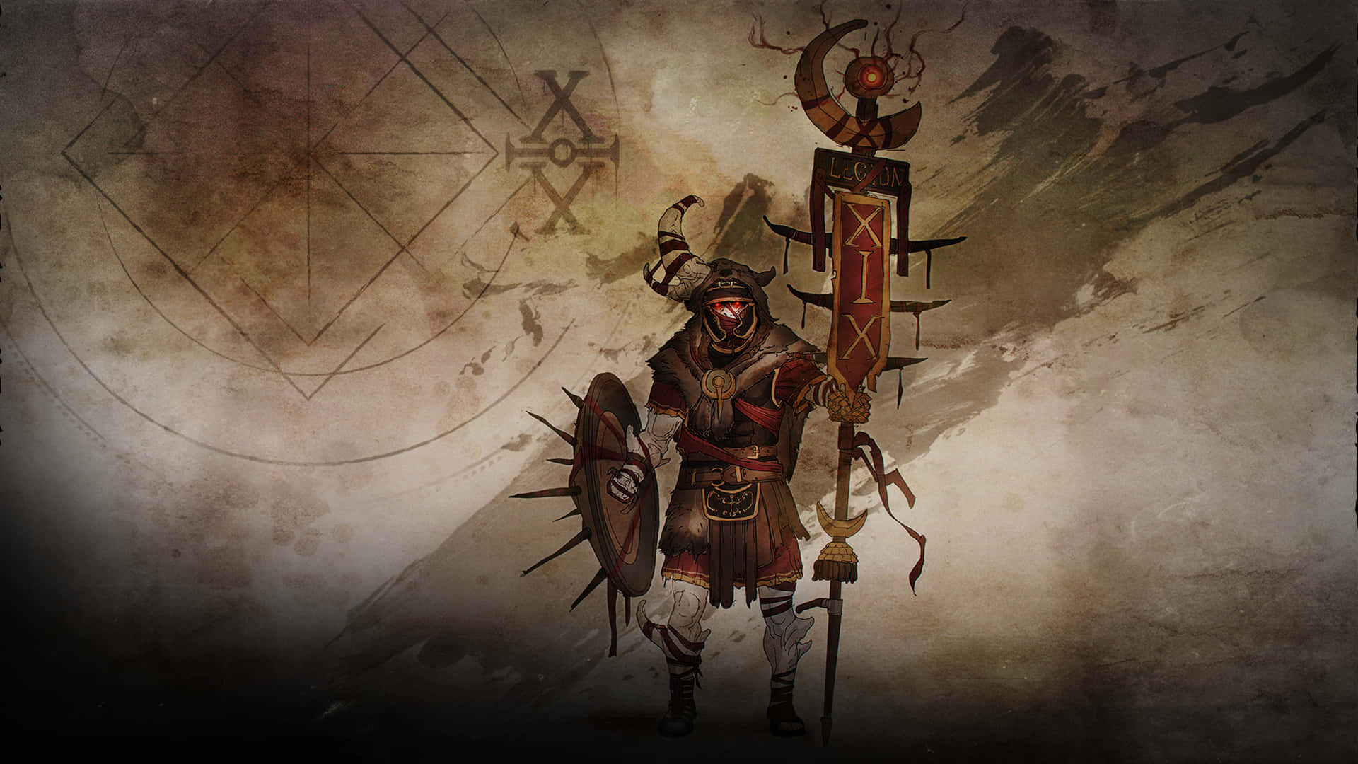 A Man With A Sword And Shield Is Standing In Front Of A Background Wallpaper