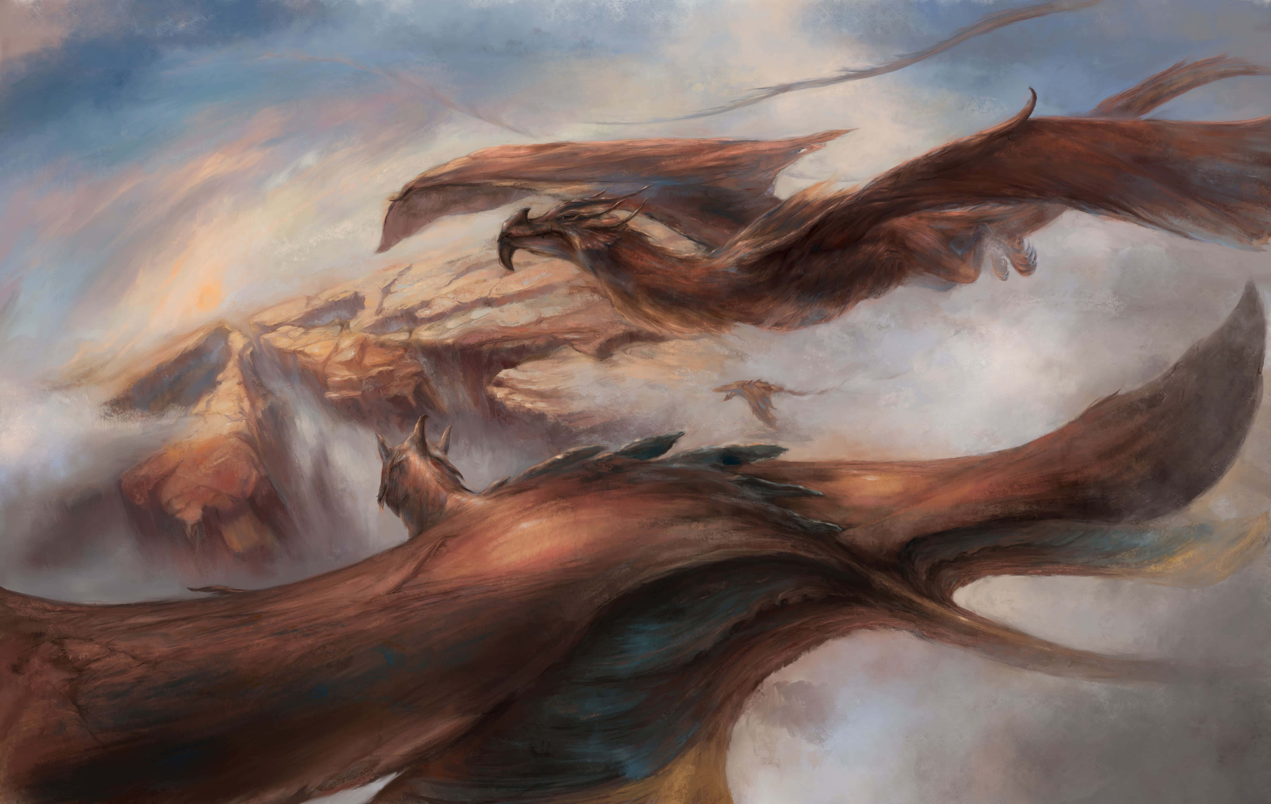A Mysterious Dragon Hovering Through The Misty Sky Wallpaper -