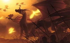 "a Mighty Dragon Faces Off Against An Intimidating Enemy In A Valiant Last Stand." Wallpaper -
