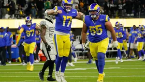 A Rams Football Player Is Holding Up His Arms Wallpaper -