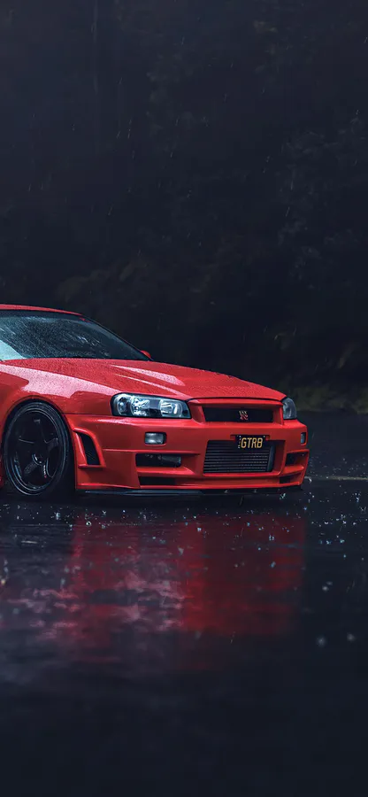 A Red Car Is Parked In The Rain Wallpaper