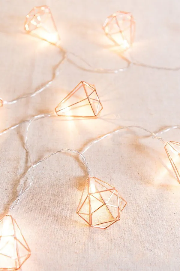 A Set Of Copper Wire Lights With Diamonds On Them -
