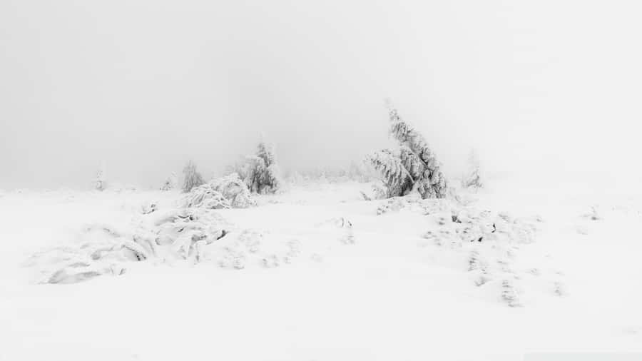 A Lone Tree In A Snowy Field Wallpaper -