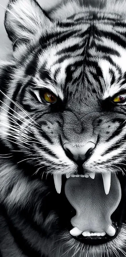 Related A Tiger With Its Mouth Open In Black And White Wallpaper