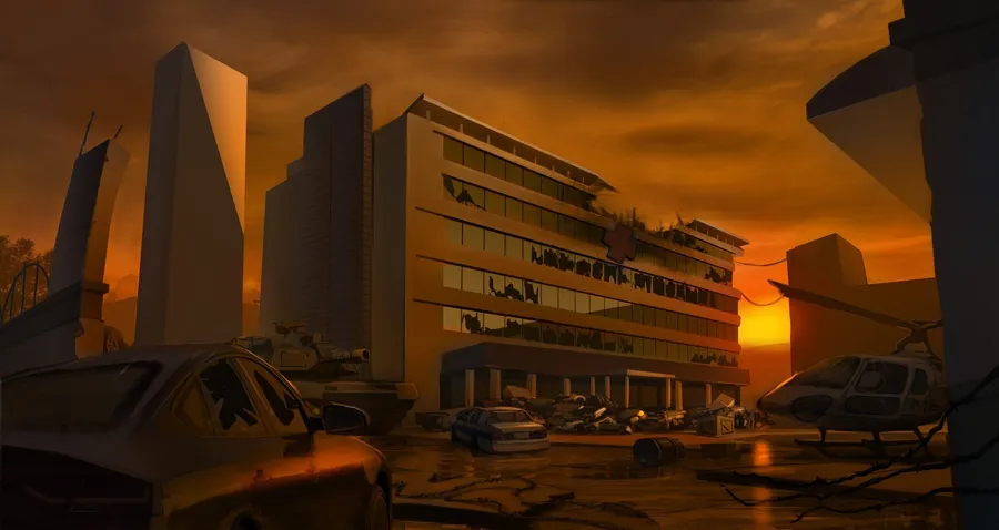 Abandoned Hospital Building In Dystopian Setting -