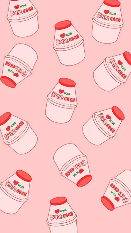 Aesthetic Pink Kawaii Cultured Strawberry Milk Wallpaper