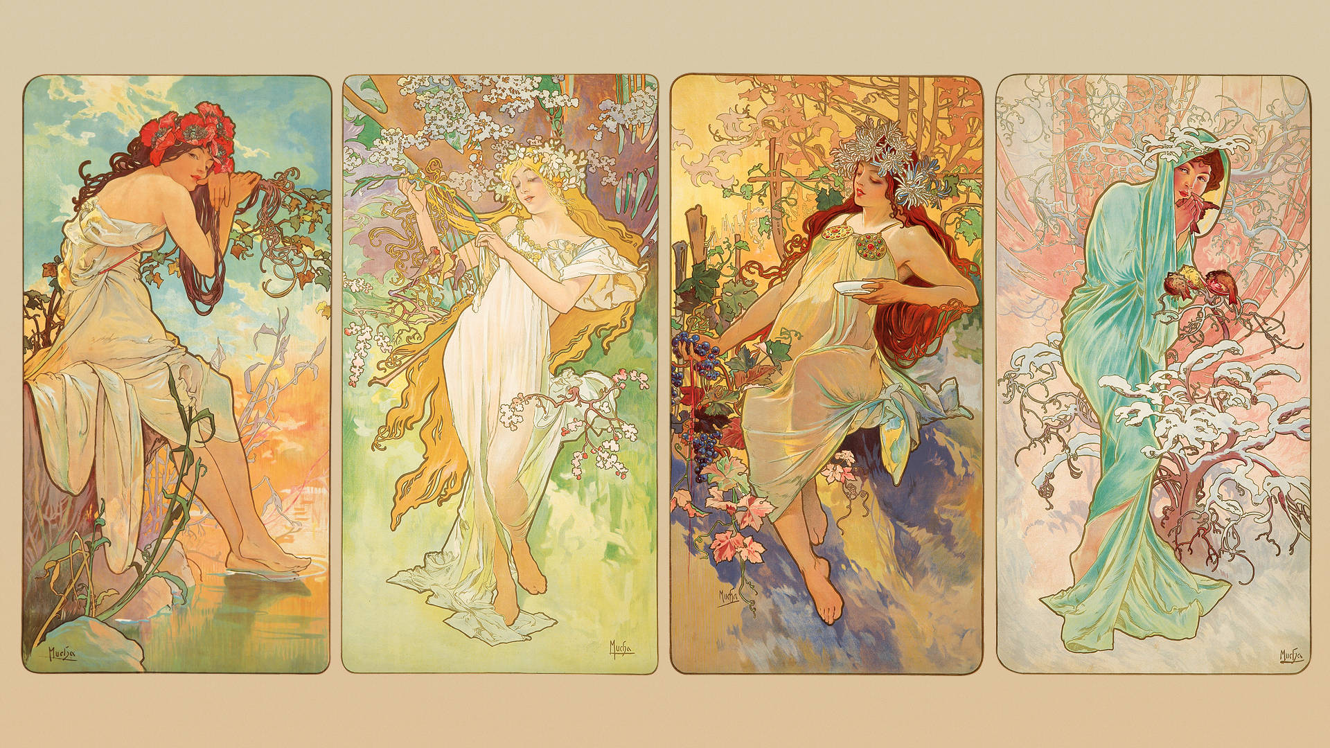Alphonse Mucha Folk Art Illustration Wallpaper