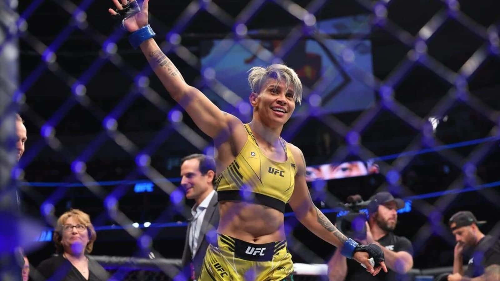 U F C Fighter Amanda Lemos Victory Pose Wallpaper -