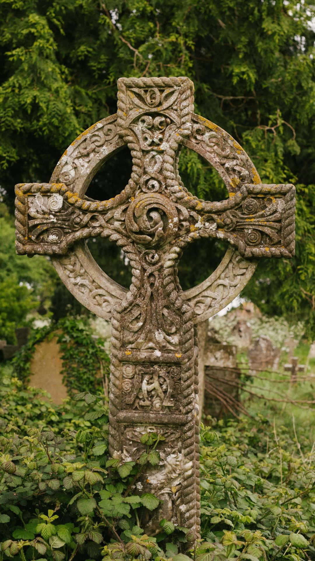Celtic Cross In Cemetery Wallpaper -