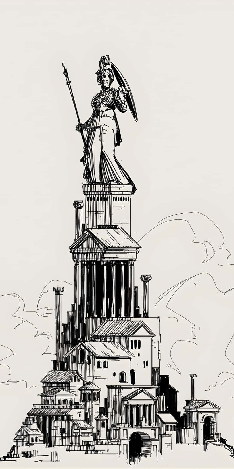 Ancient Statue Tower Sketch Wallpaper