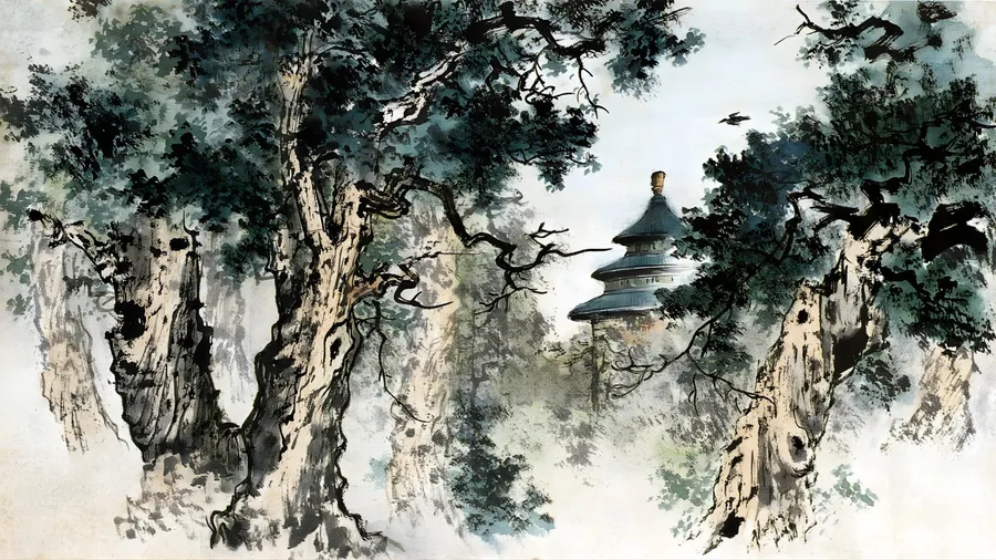 Ancient Trees And Temple Wallpaper