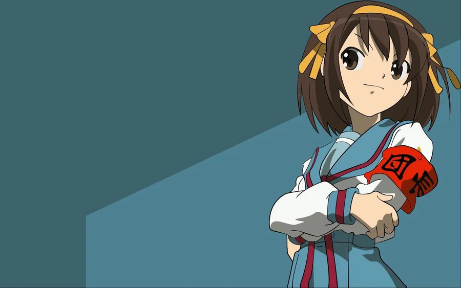 Animated Character Haruhi Suzumiya Striking A Pose Wallpaper
