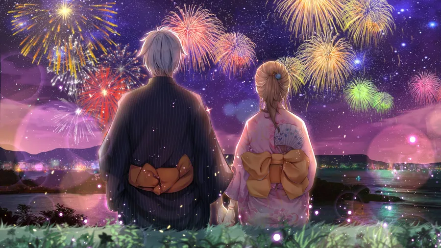 Anime Couple Watching Fireworks -