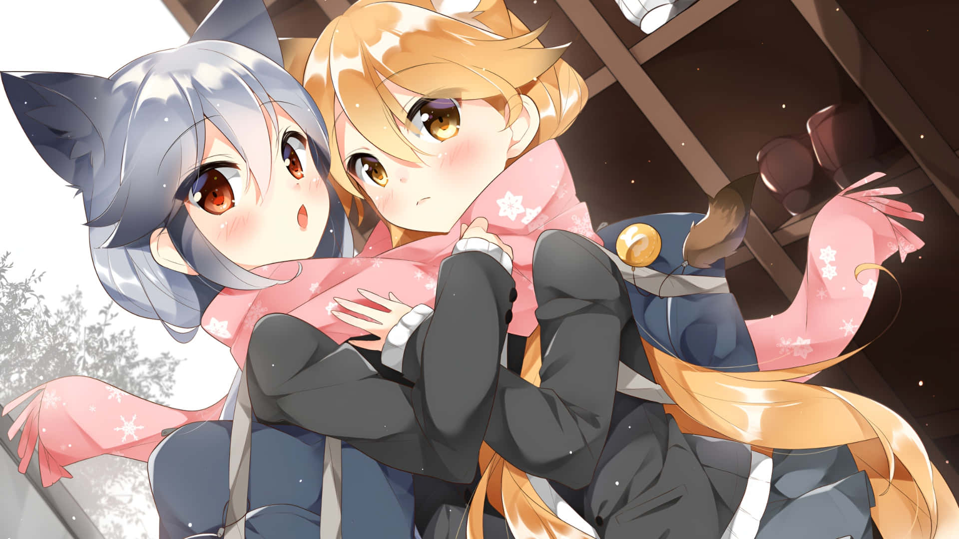 Anime Fox Girls Winter Scene Wallpaper