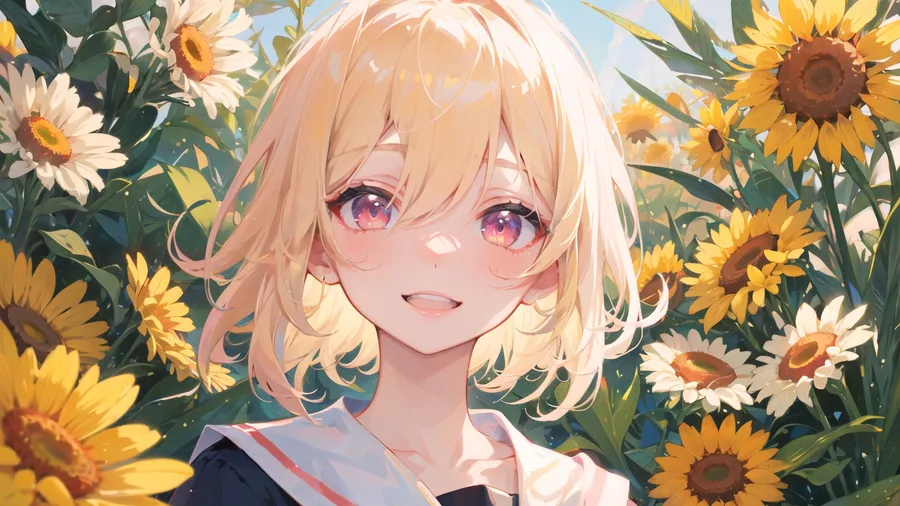 Anime Girl Among Sunflowers Wallpaper