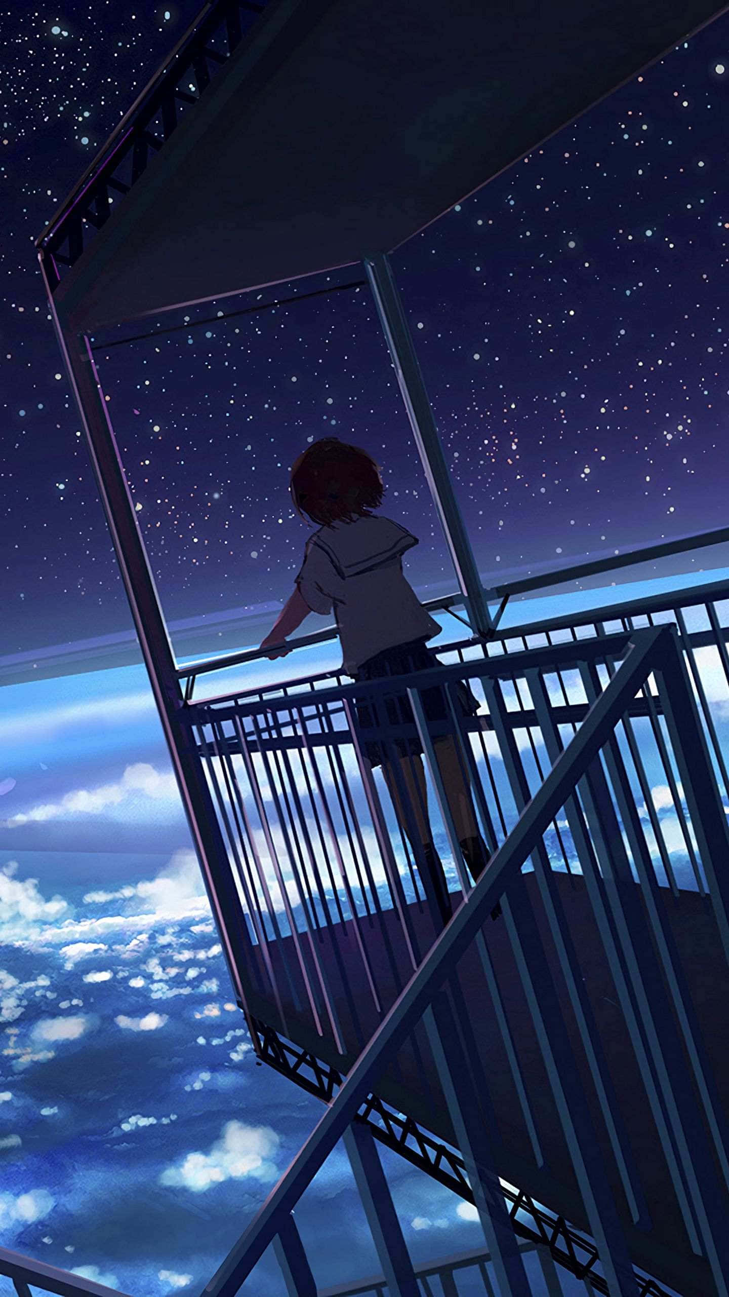 Anime Girl Stargazing Balcony -