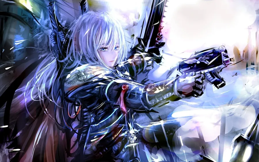 Anime Girl Intense Gunfire Wallpaper -