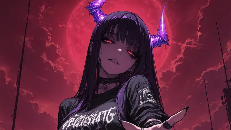 Anime Red Moon Demon Girl -