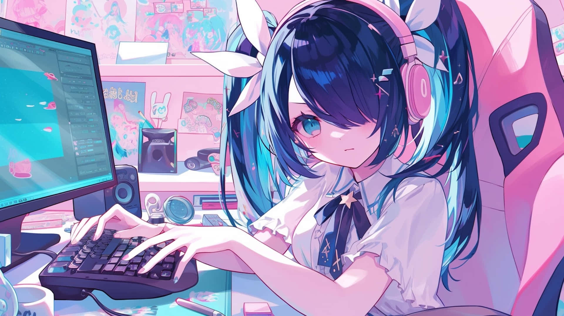 Anime Streamer Girl Gaming Setup Wallpaper