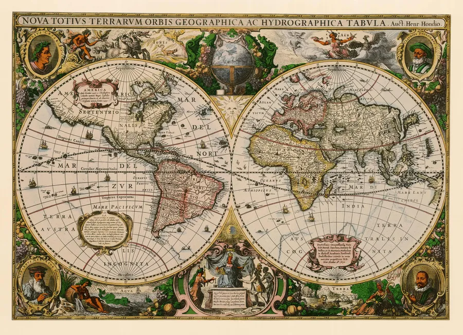 Antique World Map Hondius1600s -