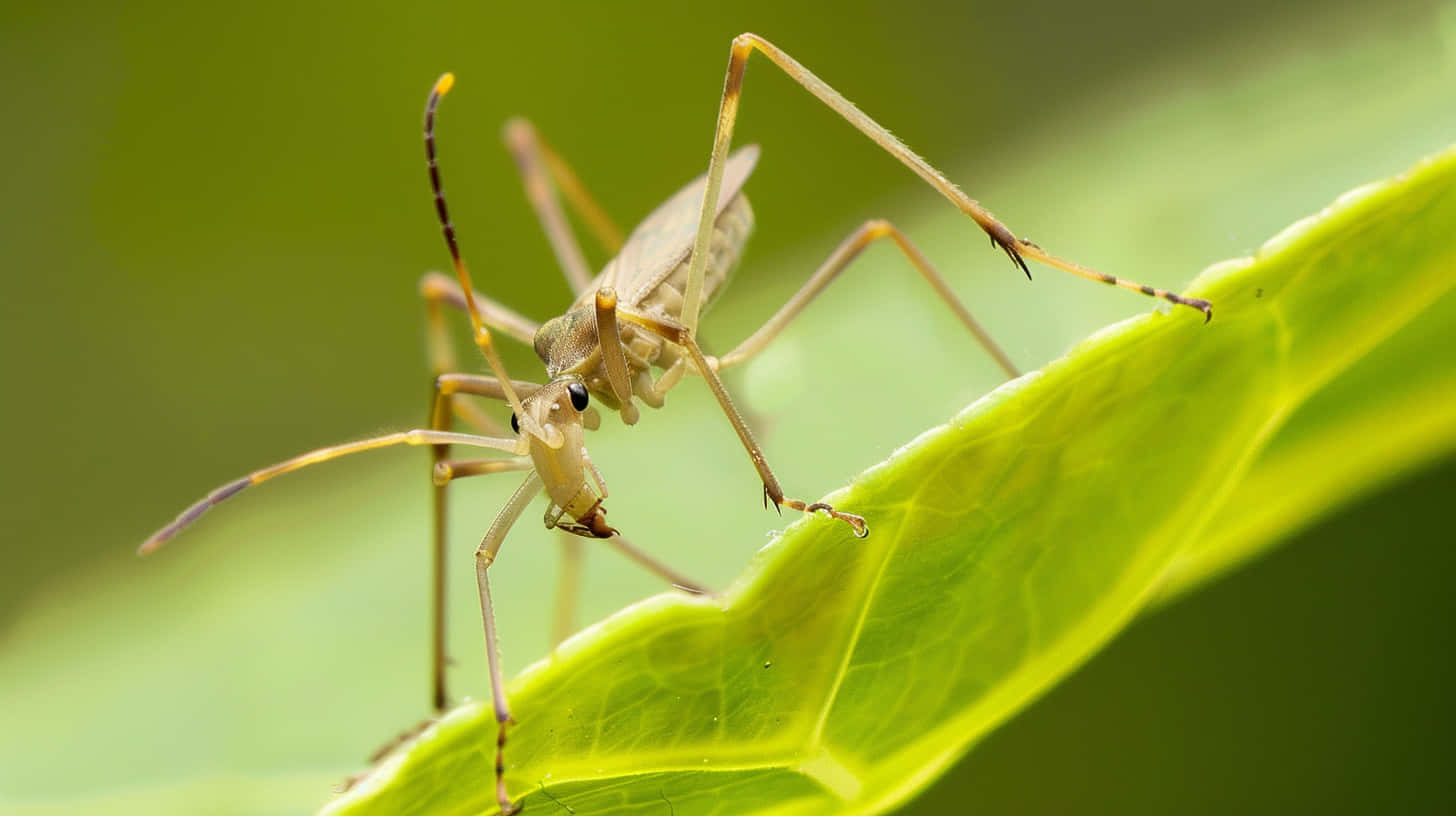 Closeup Assassin Bugon Leaf Wallpaper -