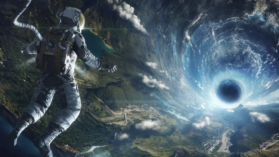 Astronaut Approaching Space Vortex -