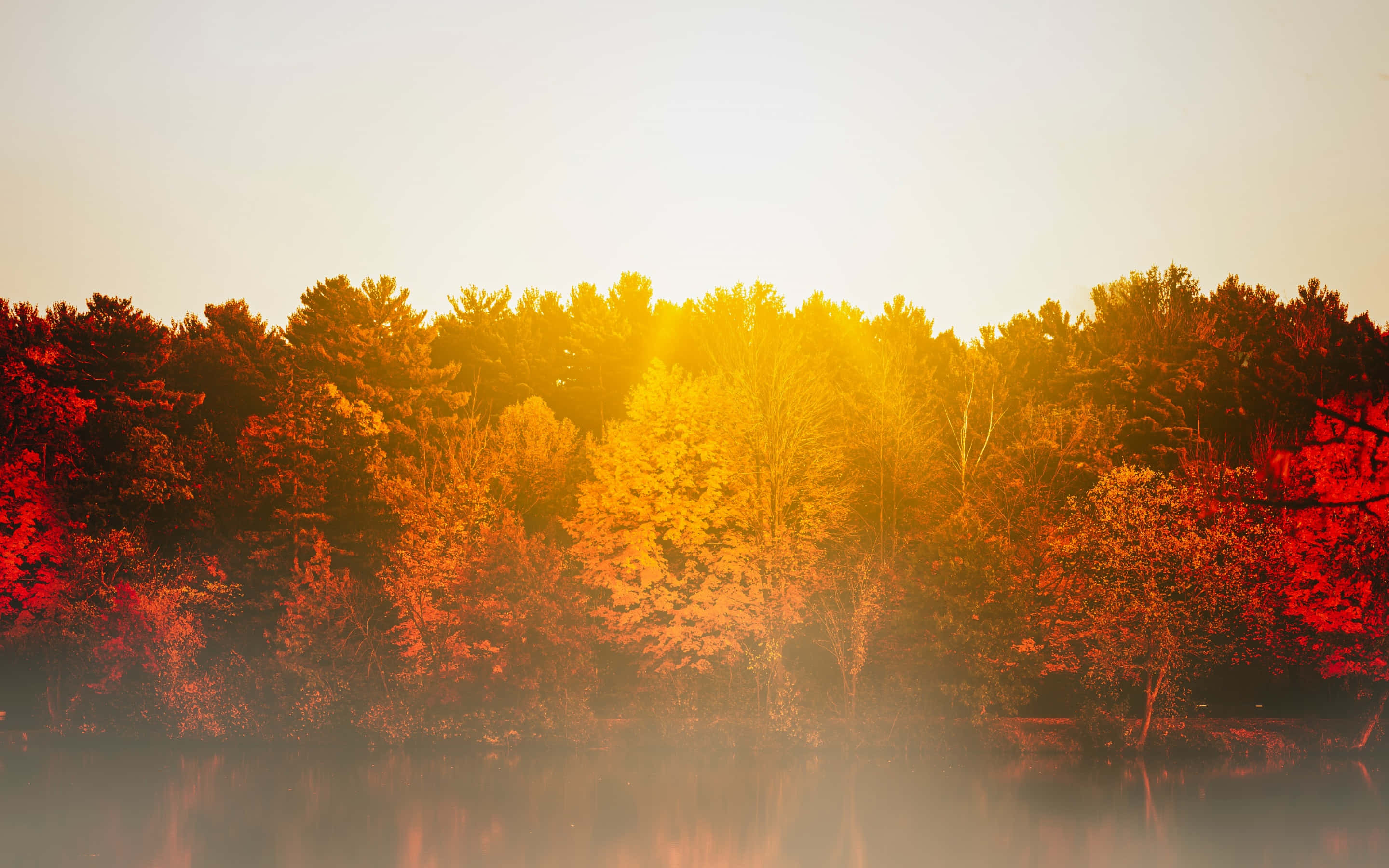 Autumnal Lake Sunrise Glow Wallpaper