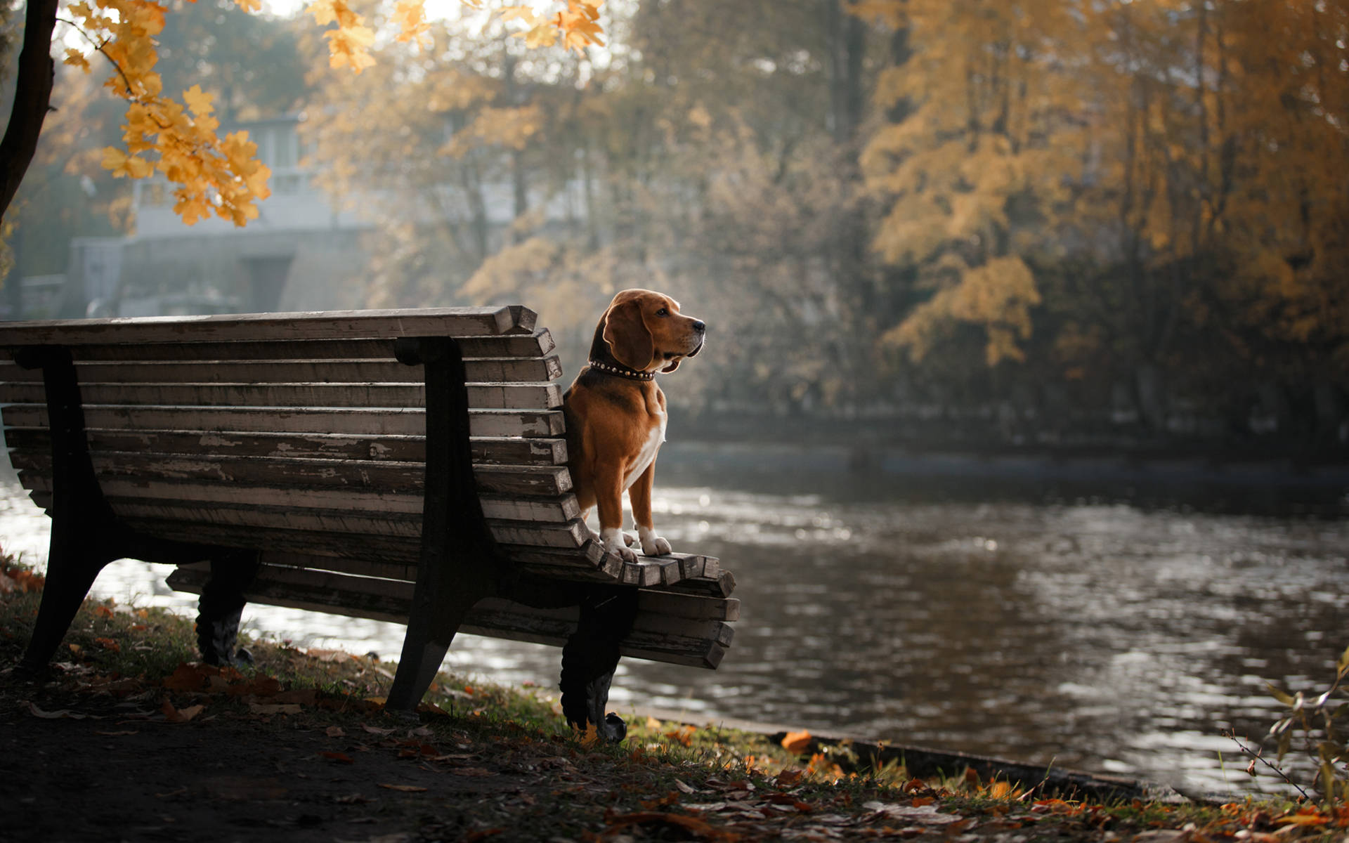 Related Beagle On A Park Bench Wallpaper