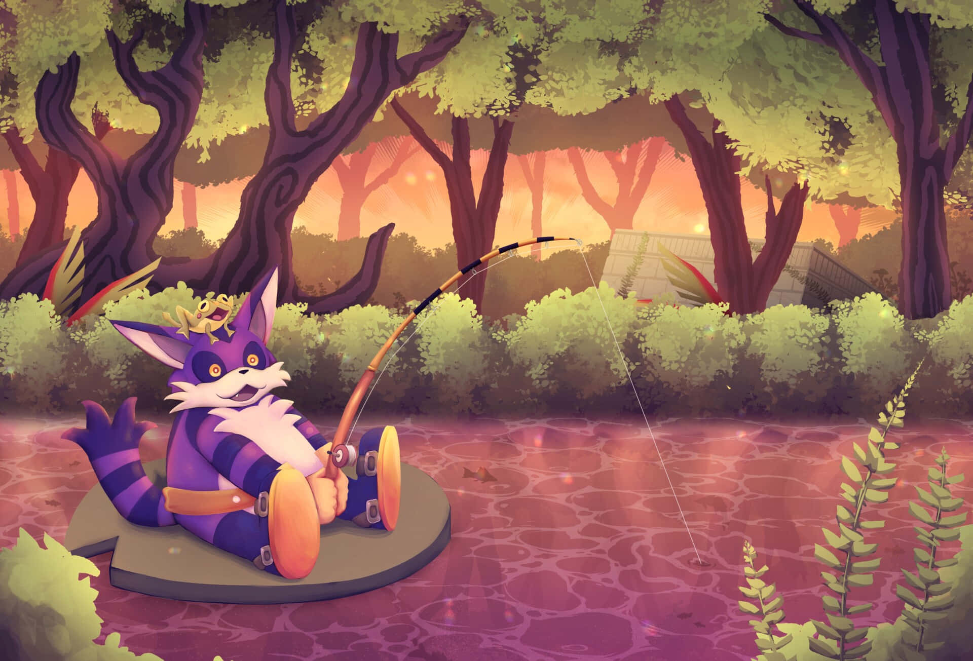 Big The Cat With His Fishing Pole, Enjoying The Sunset Wallpaper -