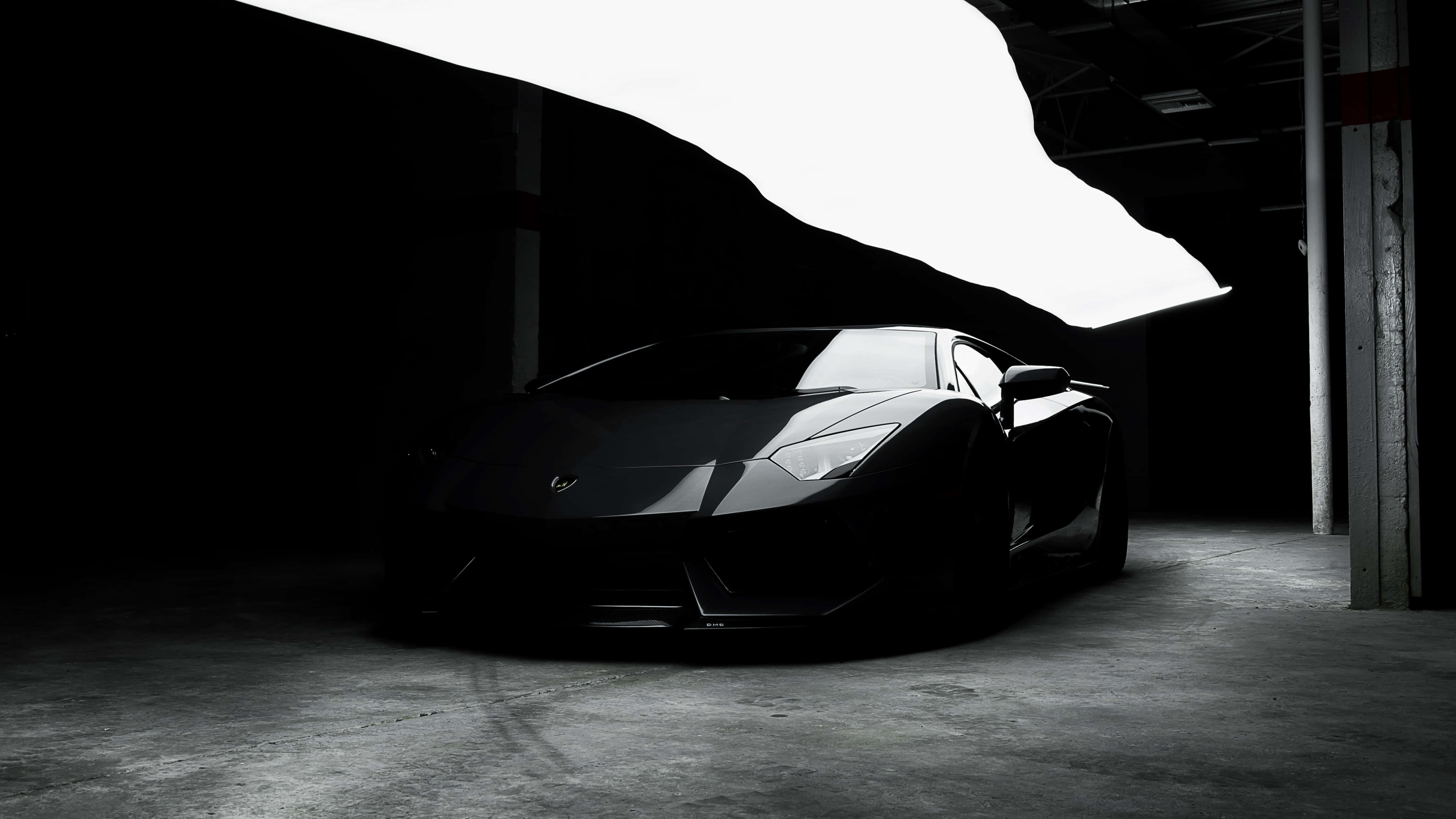 Black Sports Carin Shadowy Garage.jpg Wallpaper