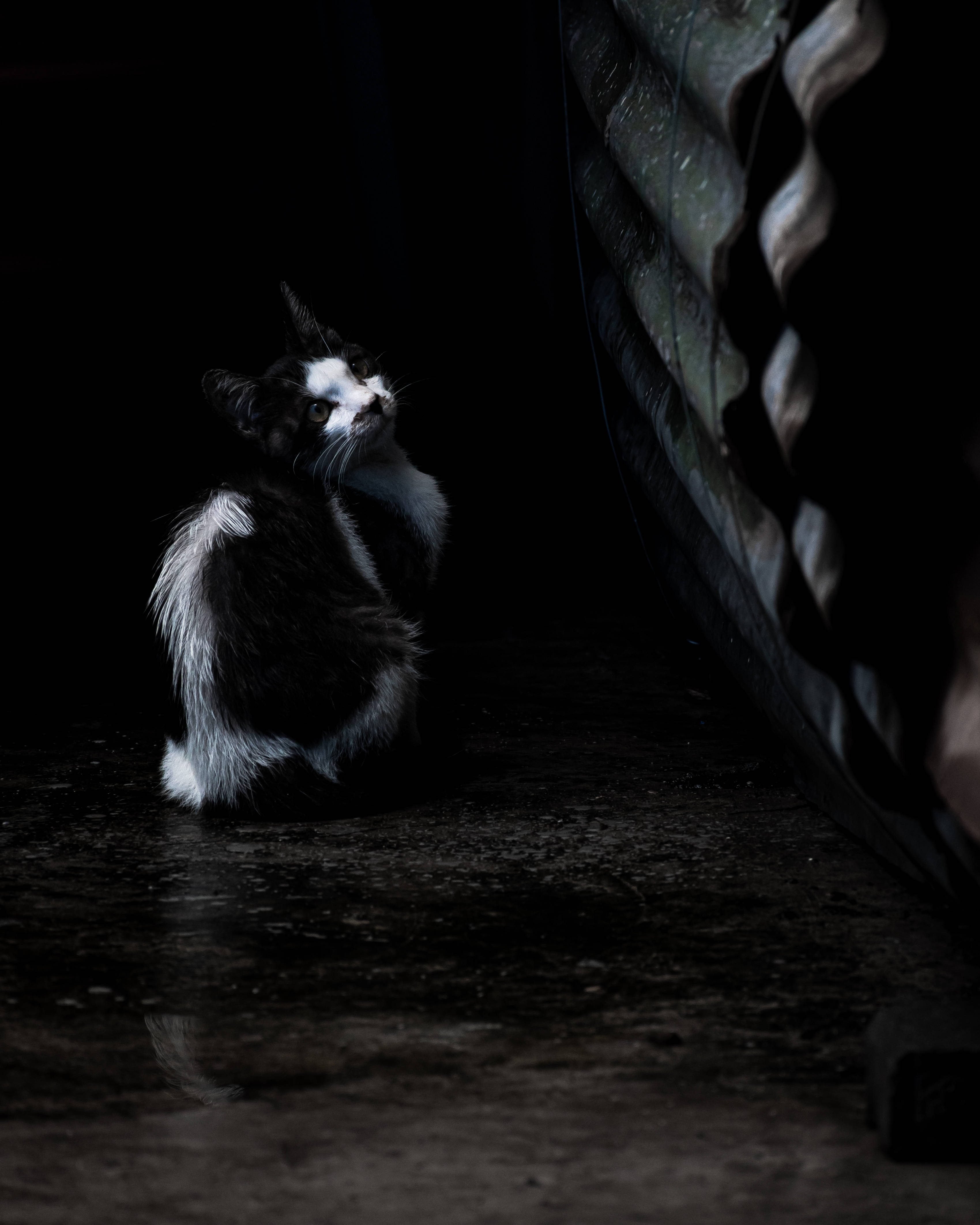 Black And White Cat In Alley Wallpaper -