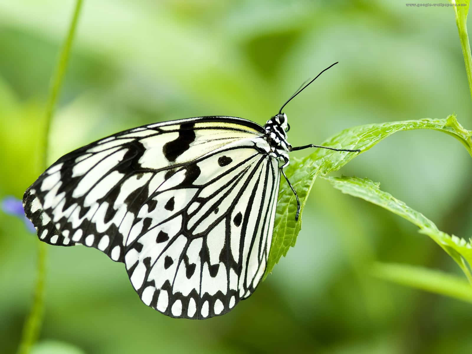 Black White Patterned Butterflyon Leaf.jpg Wallpaper
